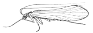 they come out of the water at night to feed. Caddisfly larvae are classified as net spinning, free living, or case building. The netspinners build a retreat incorporating a silken net to capture food, similar to a spider web, only underwater. The freeliving build no shelter. The casebuilders build either a portable or fixed case for their protection. All caddisflies lack tails, which differentiates them from mayflies and stoneflies. Caddisfly pupae have free trailing antennae and legs, unlike aquatic moth pupae whose antennae and legs are fused to their bodies. Caddisfly adults have antennae as long or longer than their body, unlike alderfly adults whose antennae are half as long as their bodies. Caddisfly adult wings, which are folded tent-like when at rest, are covered with tiny hairs, unlike aquatic moth adults, whose wings are covered with scales. |
