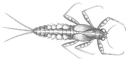 on their tails, which provide propulsion. Burrowers, which are also effective swimmers, have evolved with tusks for digging. They excavate a circular tunnel in the soft bottoms of lakes and streams, and venture out of their tunnels only under protection of darkness. Clingers have evolved with very flattened bodies and stout legs, which allow them to cling tenaciously to rocks in fast current. Some species have even evolved with ventral gills that work like suction cups to hold them securely to a rock. Crawlers are a diverse group. With strong legs and limited swimming ability, they are best adapted to browsing along the bottom on rocks and plant. |