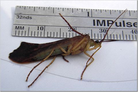 All right caddis fans, anybody take a shot at identification of this guy. Color may be a bit washed out, found in pool skimmer this AM and we had shocked (super chlorinate) pool last night. Saw one on window last night but it took off before I could get a picture.