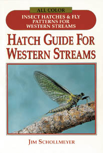 | Hatch Guide For Western Streams by Jim Schollmeyer offers a color photo of each covered insect life stage on the left page, and three effective imitations on the right page. Any western flyfisher wishing to match immature and/or adult aquatic insects would benefit from use of this book. | |