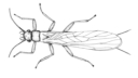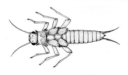 all aquatic. Stonefly larvae (nymphs) are easily recognized by their two stout tails, which are more widely separated at the base than those of mayfly nymphs. Stonefly adults, which also have two tails, are easily recognized by their four equal length wings, which are held flat over the abdomen when at rest. |