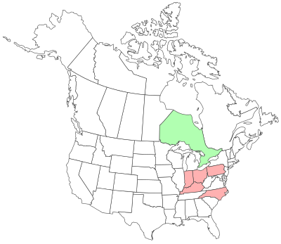 CAN Provinces = *01:ON. USA States = *01:IN, KY, NC, OH.*05:NC*06:PA*10:IN, OH The State/Province distribution of this page is based on the following scientific papers, as updated to reflect taxonomy of the Mayfly Central - North American Species List: *01: Distribution of mayfly species of North America, by R. P. Randolph, supplemented by the following: *02: Mayflies (Ephemeroptera) of the far western United States: Part I: Washington) by M. D. Meyer & W. P. McCafferty *03: Mayflies (Ephemeroptera) of the far western United States: Part II: Oregon) by M. D. Meyer & W. P. McCafferty *04: Additions and Emendations to The Mayflies (Ephemeroptera) Fauna Of Saskatchewan, Canada by J. M. Webb, et. al. *05: The Ephemeroptera Of North Carolina by S. R. Beaty *06: Pennsylvania Mayflies by G. A. Hoover *07: Insecta, Ephemeroptera: New Alabama state records by W. P. McCafferty & J. M. Webb *08: Insecta, Ephemeroptera: Range extensions and new records for Ontario and Canada by McCafferty, Jacobus, Webb, Meyer *09: Mayflies (Insect: Ephemeroptera) of Nevada, Unites States of America by W. P. McCafferty, R. P. Randolph *10: USGS NPWRC - Mayflies of the United States - coordinated by B. C. Kondratieff *11: A New Species of Mayfly from WV by B. C. Kondratieff and M. D. Meyer *12: The Mayflies (Ephemeroptera) Of Alaska by R. P. Randolph and W. P. McCafferty *13: Mayflies (Ephemeroptera) of the far western United States: Part III: California by M. D. Meyer & W. P. McCafferty *14: Insecta, Ephemeroptera: New and additional records for New York by Meyers, Jacobus, Kondratieff *15: New Records Of Mayflies (Ephemeroptera From Alberta, Can. by J. P. Webb and W. P. McCafferty *16: Insecta, Ephemeroptera: range extensions and new Iowa state records by McCafferty, Hubbard, and Webb *17: Nunavut Mayflies (Ephemeroptera) A Supplement For Far Northern North America by R. P. Randolph & W. P. McCafferty *18: A New Species of Caenis (Ephemeroptera: Caenidae) from Florida, USA by M. L. Pescador & B. A. Richard *19: Cercobrachys fox: Guenther & McCafferty, 2005; Sun & McCafferty, 2008; Guenther & McCafferty, 2008 *20: Cladistics, classification, and identification of the brachycercine mayflies (Caenidae) by Lu Sun & W. P. McCafferty *21: A new species and new synonym in Heptagenia ... by J.B. Webb, W.P McCafferty, and V. R. Ferris *22: A New Genus and Species of Small Minnow Mayfly from Far Northern North America by W. P. McCafferty *23: A New Species of Maccaffertium Bednarik (Ephemeroptera: Heptageniidae) by W. P. McCafferty *24: A New Species of (Baetidae); First Representative of Genus North of Mexico by W. P. McCafferty *25: Contributions to the larvae of N. American Nixe (Ephemeroptera: Heptageniidae) ... by W. P. McCafferty & M. D. Meyer *26: Insecta, Ephemeroptera: Transcontinental range extensions in western North America by F. M. Webb & W. P. McCafferty *27: A New Species of Acentrella from New York and New England by S. K. Burian & L. W. Myers *28: A New Species of Mayfly from West Virginia by B. C. Kondratieff & M. D. Meyer *29: BoldSystems - Public Data Portal - Specimen Record - Nixe joernensis by L. M. Jacobus *30: A New Genus And New Species of Baetidae from lakes and reservoirs in eastern North America by Hill, Pfeiffer, & Jacobus *31: Contributions to the Systematics of Leucrocuta, Nixe, and Related Genera (Ephemeroptera: Heptageniidae by W. P. McCafferty *32: Phylogenetic Systematics of the Potamanthidae (Ephemeropters) by Y. J. Bae and W. P. McCafferty *33: A Revision of Subgenus Drunella by R. K. Allen and G. F. Edmunds, Jr. *34: Mayflies (Ephemeroptera) of the Great Plains. I: Nebraska by McCafferty, Kluggertanz, Randolph, Provonsha, Lawson, Kondratieff *35: Mayflies (Ephemeroptera) of the Great Plains. II: Iowa by McCafferty, Hubbard, Klubertanz, Randolph, Birmingham *36: Mayflies (Ephemeroptera) of the Great Plains. III: North Dakota by J. L. Guenther and W. P. McCafferty *37: Mayflies (Ephemeroptera) of the Great Plains. IV: South Dakota by J. L. Guenther and W. P. McCafferty *38: South Carolina Mayflies (Ephemeroptera) by W. P. McCafferty and M. D. Meyer *39: A new species of Labiobaetis Novikova & Kluge, 1987 (Ephemeroptera: Baetidae) from Washington, USA by J. M. Webb *40: Revisionary contributions to North American Ephemerella and Serratella (Ephemeroptera: Ephemerellidae) by L. M. Jacobus & W. P. McCafferty *41: Preliminary survey of the mayflies (Ephemeroptera) ... of Big Bend Ranch State Park & Big Bend Natl. Pk. by D. E. Baumgardner & D. E. Bowles *42: A revision of the genus Leptohyphes Eaton (Ephmeroptera: Leptohyphidae) in North and Central America by D. E. Baumgardner & W. P. McCafferty *43: New Species Synonyms and Records on North American Centroptilum and Procloeon (Ephemeroptera: Baetidae) by N. A. Wiersema & W. P. McCafferty *44: New and Additional Records of Mayflies (Ephemeroptera) from the Southwestern United States by D. E. Baumgardner *45: The mayflies (Ephemeroptera) of New Hampshire: Seasonality and Diversity of the Stream Fauna by Chandler, Whitmore, Burian, Burger *46: Insecta, Ephemeroptera, Baetidae: Range extensions and new state records from Kansas, U.S.A by W. P. McCafferty & L. M. Jacobus *47: Insecta, Ephemeroptera: Range extensions and new state records from far western Montana by W. P. McCafferty & R. L. Newell *48: New records (of Plauditus cestus) from Virginia and the Northwest Territories, with notes on color variation by Gorski, Fox, McQueen, and Jacobus *49: Geographic range extension to Wyoming, USA for Paraleptophlebia praepedita by Ashley Garlick, B. C. Kondratieff, and L. M. Jacobus *50: Insects Of Hawaii by E. C. Zimmerman *51: A new species of Neoephemera McDunnough, 1925 (Ephemeroptera: Neoephemeridae) from N. Carolina and Virginia by Holland, Beaty, and Jacobus *52: Review of continental North and Central American Paracloeodes Day 1955 (Ephemeroptera: Baetidae) by P. V. Cruz, A. K. Usher, and L. M. Jacobus *53: First records of Baetis vernus Curti