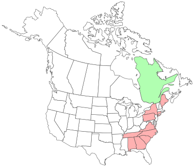 CAN Provinces = *01:QC. USA States = *01:AL, CT, GA, ME, NC, NY, SC, VA.*05:NC*06:PA*10:AL, CT, ME, NY*99:NC,TN The State/Province distribution of this page is based on the following scientific papers, as updated to reflect taxonomy of the Mayfly Central - North American Species List: *01: Distribution of mayfly species of North America, by R. P. Randolph, supplemented by the following: *02: Mayflies (Ephemeroptera) of the far western United States: Part I: Washington) by M. D. Meyer & W. P. McCafferty *03: Mayflies (Ephemeroptera) of the far western United States: Part II: Oregon) by M. D. Meyer & W. P. McCafferty *04: Additions and Emendations to The Mayflies (Ephemeroptera) Fauna Of Saskatchewan, Canada by J. M. Webb, et. al. *05: The Ephemeroptera Of North Carolina by S. R. Beaty *06: Pennsylvania Mayflies by G. A. Hoover *07: Insecta, Ephemeroptera: New Alabama state records by W. P. McCafferty & J. M. Webb *08: Insecta, Ephemeroptera: Range extensions and new records for Ontario and Canada by McCafferty, Jacobus, Webb, Meyer *09: Mayflies (Insect: Ephemeroptera) of Nevada, Unites States of America by W. P. McCafferty, R. P. Randolph *10: USGS NPWRC - Mayflies of the United States - coordinated by B. C. Kondratieff *11: A New Species of Mayfly from WV by B. C. Kondratieff and M. D. Meyer *12: The Mayflies (Ephemeroptera) Of Alaska by R. P. Randolph and W. P. McCafferty *13: Mayflies (Ephemeroptera) of the far western United States: Part III: California by M. D. Meyer & W. P. McCafferty *14: Insecta, Ephemeroptera: New and additional records for New York by Meyers, Jacobus, Kondratieff *15: New Records Of Mayflies (Ephemeroptera From Alberta, Can. by J. P. Webb and W. P. McCafferty *16: Insecta, Ephemeroptera: range extensions and new Iowa state records by McCafferty, Hubbard, and Webb *17: Nunavut Mayflies (Ephemeroptera) A Supplement For Far Northern North America by R. P. Randolph & W. P. McCafferty *18: A New Species of Caenis (Ephemeroptera: Caenidae) from Florida, USA by M. L. Pescador & B. A. Richard *19: Cercobrachys fox: Guenther & McCafferty, 2005; Sun & McCafferty, 2008; Guenther & McCafferty, 2008 *20: Cladistics, classification, and identification of the brachycercine mayflies (Caenidae) by Lu Sun & W. P. McCafferty *21: A new species and new synonym in Heptagenia ... by J.B. Webb, W.P McCafferty, and V. R. Ferris *22: A New Genus and Species of Small Minnow Mayfly from Far Northern North America by W. P. McCafferty *23: A New Species of Maccaffertium Bednarik (Ephemeroptera: Heptageniidae) by W. P. McCafferty *24: A New Species of (Baetidae); First Representative of Genus North of Mexico by W. P. McCafferty *25: Contributions to the larvae of N. American Nixe (Ephemeroptera: Heptageniidae) ... by W. P. McCafferty & M. D. Meyer *26: Insecta, Ephemeroptera: Transcontinental range extensions in western North America by F. M. Webb & W. P. McCafferty *27: A New Species of Acentrella from New York and New England by S. K. Burian & L. W. Myers *28: A New Species of Mayfly from West Virginia by B. C. Kondratieff & M. D. Meyer *29: BoldSystems - Public Data Portal - Specimen Record - Nixe joernensis by L. M. Jacobus *30: A New Genus And New Species of Baetidae from lakes and reservoirs in eastern North America by Hill, Pfeiffer, & Jacobus *31: Contributions to the Systematics of Leucrocuta, Nixe, and Related Genera (Ephemeroptera: Heptageniidae by W. P. McCafferty *32: Phylogenetic Systematics of the Potamanthidae (Ephemeropters) by Y. J. Bae and W. P. McCafferty *33: A Revision of Subgenus Drunella by R. K. Allen and G. F. Edmunds, Jr. *34: Mayflies (Ephemeroptera) of the Great Plains. I: Nebraska by McCafferty, Kluggertanz, Randolph, Provonsha, Lawson, Kondratieff *35: Mayflies (Ephemeroptera) of the Great Plains. II: Iowa by McCafferty, Hubbard, Klubertanz, Randolph, Birmingham *36: Mayflies (Ephemeroptera) of the Great Plains. III: North Dakota by J. L. Guenther and W. P. McCafferty *37: Mayflies (Ephemeroptera) of the Great Plains. IV: South Dakota by J. L. Guenther and W. P. McCafferty *38: South Carolina Mayflies (Ephemeroptera) by W. P. McCafferty and M. D. Meyer *39: A new species of Labiobaetis Novikova & Kluge, 1987 (Ephemeroptera: Baetidae) from Washington, USA by J. M. Webb *40: Revisionary contributions to North American Ephemerella and Serratella (Ephemeroptera: Ephemerellidae) by L. M. Jacobus & W. P. McCafferty *41: Preliminary survey of the mayflies (Ephemeroptera) ... of Big Bend Ranch State Park & Big Bend Natl. Pk. by D. E. Baumgardner & D. E. Bowles *42: A revision of the genus Leptohyphes Eaton (Ephmeroptera: Leptohyphidae) in North and Central America by D. E. Baumgardner & W. P. McCafferty *43: New Species Synonyms and Records on North American Centroptilum and Procloeon (Ephemeroptera: Baetidae) by N. A. Wiersema & W. P. McCafferty *44: New and Additional Records of Mayflies (Ephemeroptera) from the Southwestern United States by D. E. Baumgardner *45: The mayflies (Ephemeroptera) of New Hampshire: Seasonality and Diversity of the Stream Fauna by Chandler, Whitmore, Burian, Burger *46: Insecta, Ephemeroptera, Baetidae: Range extensions and new state records from Kansas, U.S.A by W. P. McCafferty & L. M. Jacobus *47: Insecta, Ephemeroptera: Range extensions and new state records from far western Montana by W. P. McCafferty & R. L. Newell *48: New records (of Plauditus cestus) from Virginia and the Northwest Territories, with notes on color variation by Gorski, Fox, McQueen, and Jacobus *49: Geographic range extension to Wyoming, USA for Paraleptophlebia praepedita by Ashley Garlick, B. C. Kondratieff, and L. M. Jacobus *50: Insects Of Hawaii by E. C. Zimmerman *51: A new species of Neoephemera McDunnough, 1925 (Ephemeroptera: Neoephemeridae) from N. Carolina and Virginia by Holland, Beaty, and Jacobus *52: Review of continental North and Central American Paracloeodes Day 1955 (Ephemeroptera: Baetidae) by P. V. Cruz, A. K. Usher, and L. M. Jacobus *53: Fir