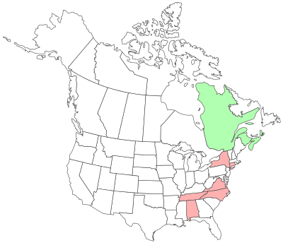 CAN Provinces = *01:NB, NS, QC.*09:NB USA States = *01:AL, CT, NY, VA.*10:AL, CT, NY*99:NC,TN The State/Province distribution of this page is based on the following scientific papers, as updated to reflect taxonomy of the Mayfly Central - North American Species List: *01: Distribution of mayfly species of North America, by R. P. Randolph, supplemented by the following: *02: Mayflies (Ephemeroptera) of the far western United States: Part I: Washington) by M. D. Meyer & W. P. McCafferty *03: Mayflies (Ephemeroptera) of the far western United States: Part II: Oregon) by M. D. Meyer & W. P. McCafferty *04: Additions and Emendations to The Mayflies (Ephemeroptera) Fauna Of Saskatchewan, Canada by J. M. Webb, et. al. *05: The Ephemeroptera Of North Carolina by S. R. Beaty *06: Pennsylvania Mayflies by G. A. Hoover *07: Insecta, Ephemeroptera: New Alabama state records by W. P. McCafferty & J. M. Webb *08: Insecta, Ephemeroptera: Range extensions and new records for Ontario and Canada by McCafferty, Jacobus, Webb, Meyer *09: Mayflies (Insect: Ephemeroptera) of Nevada, Unites States of America by W. P. McCafferty, R. P. Randolph *10: USGS NPWRC - Mayflies of the United States - coordinated by B. C. Kondratieff *11: A New Species of Mayfly from WV by B. C. Kondratieff and M. D. Meyer *12: The Mayflies (Ephemeroptera) Of Alaska by R. P. Randolph and W. P. McCafferty *13: Mayflies (Ephemeroptera) of the far western United States: Part III: California by M. D. Meyer & W. P. McCafferty *14: Insecta, Ephemeroptera: New and additional records for New York by Meyers, Jacobus, Kondratieff *15: New Records Of Mayflies (Ephemeroptera From Alberta, Can. by J. P. Webb and W. P. McCafferty *16: Insecta, Ephemeroptera: range extensions and new Iowa state records by McCafferty, Hubbard, and Webb *17: Nunavut Mayflies (Ephemeroptera) A Supplement For Far Northern North America by R. P. Randolph & W. P. McCafferty *18: A New Species of Caenis (Ephemeroptera: Caenidae) from Florida, USA by M. L. Pescador & B. A. Richard *19: Cercobrachys fox: Guenther & McCafferty, 2005; Sun & McCafferty, 2008; Guenther & McCafferty, 2008 *20: Cladistics, classification, and identification of the brachycercine mayflies (Caenidae) by Lu Sun & W. P. McCafferty *21: A new species and new synonym in Heptagenia ... by J.B. Webb, W.P McCafferty, and V. R. Ferris *22: A New Genus and Species of Small Minnow Mayfly from Far Northern North America by W. P. McCafferty *23: A New Species of Maccaffertium Bednarik (Ephemeroptera: Heptageniidae) by W. P. McCafferty *24: A New Species of (Baetidae); First Representative of Genus North of Mexico by W. P. McCafferty *25: Contributions to the larvae of N. American Nixe (Ephemeroptera: Heptageniidae) ... by W. P. McCafferty & M. D. Meyer *26: Insecta, Ephemeroptera: Transcontinental range extensions in western North America by F. M. Webb & W. P. McCafferty *27: A New Species of Acentrella from New York and New England by S. K. Burian & L. W. Myers *28: A New Species of Mayfly from West Virginia by B. C. Kondratieff & M. D. Meyer *29: BoldSystems - Public Data Portal - Specimen Record - Nixe joernensis by L. M. Jacobus *30: A New Genus And New Species of Baetidae from lakes and reservoirs in eastern North America by Hill, Pfeiffer, & Jacobus *31: Contributions to the Systematics of Leucrocuta, Nixe, and Related Genera (Ephemeroptera: Heptageniidae by W. P. McCafferty *32: Phylogenetic Systematics of the Potamanthidae (Ephemeropters) by Y. J. Bae and W. P. McCafferty *33: A Revision of Subgenus Drunella by R. K. Allen and G. F. Edmunds, Jr. *34: Mayflies (Ephemeroptera) of the Great Plains. I: Nebraska by McCafferty, Kluggertanz, Randolph, Provonsha, Lawson, Kondratieff *35: Mayflies (Ephemeroptera) of the Great Plains. II: Iowa by McCafferty, Hubbard, Klubertanz, Randolph, Birmingham *36: Mayflies (Ephemeroptera) of the Great Plains. III: North Dakota by J. L. Guenther and W. P. McCafferty *37: Mayflies (Ephemeroptera) of the Great Plains. IV: South Dakota by J. L. Guenther and W. P. McCafferty *38: South Carolina Mayflies (Ephemeroptera) by W. P. McCafferty and M. D. Meyer *39: A new species of Labiobaetis Novikova & Kluge, 1987 (Ephemeroptera: Baetidae) from Washington, USA by J. M. Webb *40: Revisionary contributions to North American Ephemerella and Serratella (Ephemeroptera: Ephemerellidae) by L. M. Jacobus & W. P. McCafferty *41: Preliminary survey of the mayflies (Ephemeroptera) ... of Big Bend Ranch State Park & Big Bend Natl. Pk. by D. E. Baumgardner & D. E. Bowles *42: A revision of the genus Leptohyphes Eaton (Ephmeroptera: Leptohyphidae) in North and Central America by D. E. Baumgardner & W. P. McCafferty *43: New Species Synonyms and Records on North American Centroptilum and Procloeon (Ephemeroptera: Baetidae) by N. A. Wiersema & W. P. McCafferty *44: New and Additional Records of Mayflies (Ephemeroptera) from the Southwestern United States by D. E. Baumgardner *45: The mayflies (Ephemeroptera) of New Hampshire: Seasonality and Diversity of the Stream Fauna by Chandler, Whitmore, Burian, Burger *46: Insecta, Ephemeroptera, Baetidae: Range extensions and new state records from Kansas, U.S.A by W. P. McCafferty & L. M. Jacobus *47: Insecta, Ephemeroptera: Range extensions and new state records from far western Montana by W. P. McCafferty & R. L. Newell *48: New records (of Plauditus cestus) from Virginia and the Northwest Territories, with notes on color variation by Gorski, Fox, McQueen, and Jacobus *49: Geographic range extension to Wyoming, USA for Paraleptophlebia praepedita by Ashley Garlick, B. C. Kondratieff, and L. M. Jacobus *50: Insects Of Hawaii by E. C. Zimmerman *51: A new species of Neoephemera McDunnough, 1925 (Ephemeroptera: Neoephemeridae) from N. Carolina and Virginia by Holland, Beaty, and Jacobus *52: Review of continental North and Central American Paracloeodes Day 1955 (Ephemeroptera: Baetidae) by P. V. Cruz, A. K. Usher, and L. M. Jacobus *53: First records of Baet
